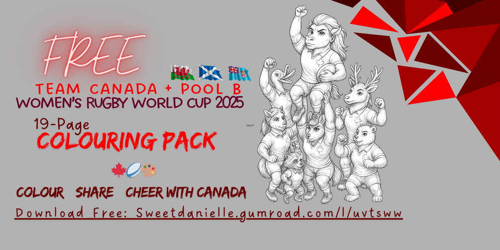 Meet the teams through their home-field animals—a simple way to show the strengths and character each nation brings to rugby. This mini pack spotlights Pool B: Canada, Scotland, Fiji, and Wales, with 12 colouring pages + more! Print, colour, pass it on.